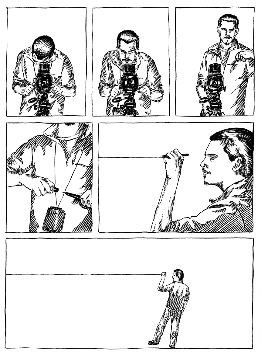 On peut me voir dans une espace vide, en tenue "photo d'urbex" amorçant le début d'un quelque chose par le tracé d'une ligne d'horizon.