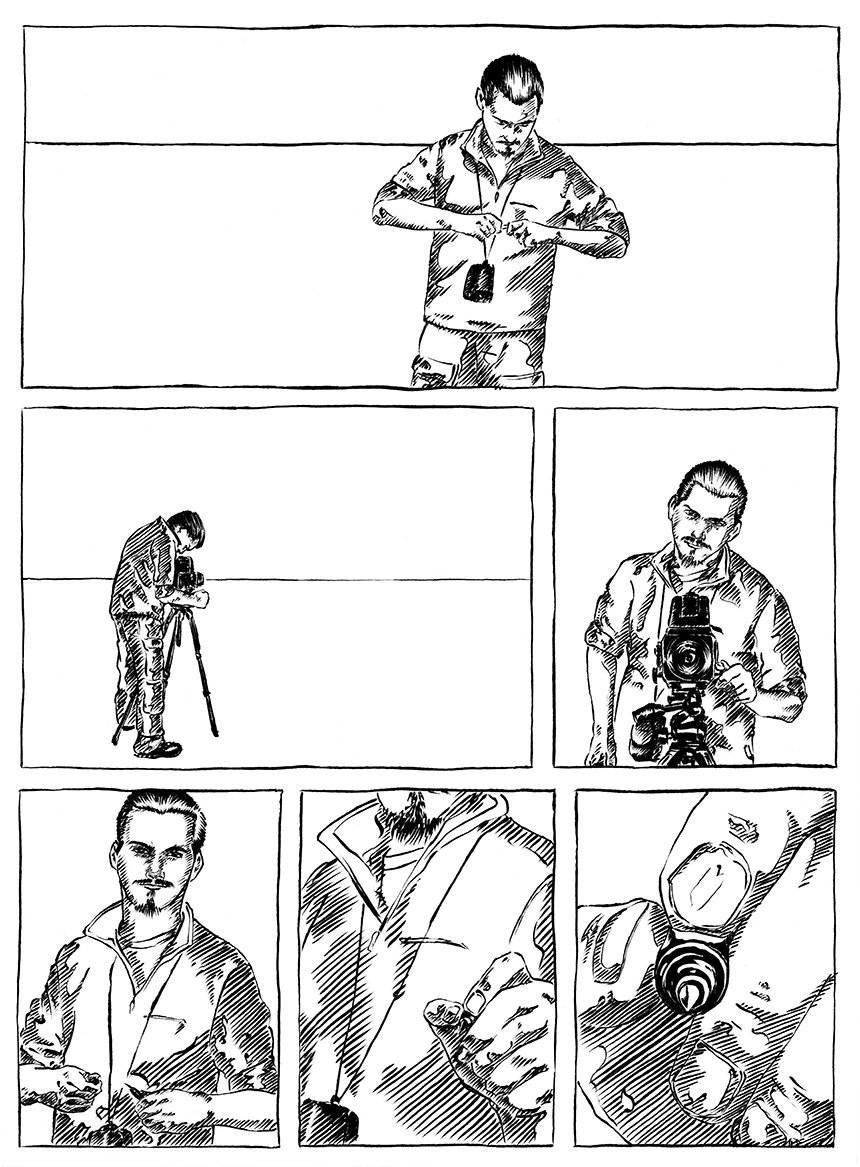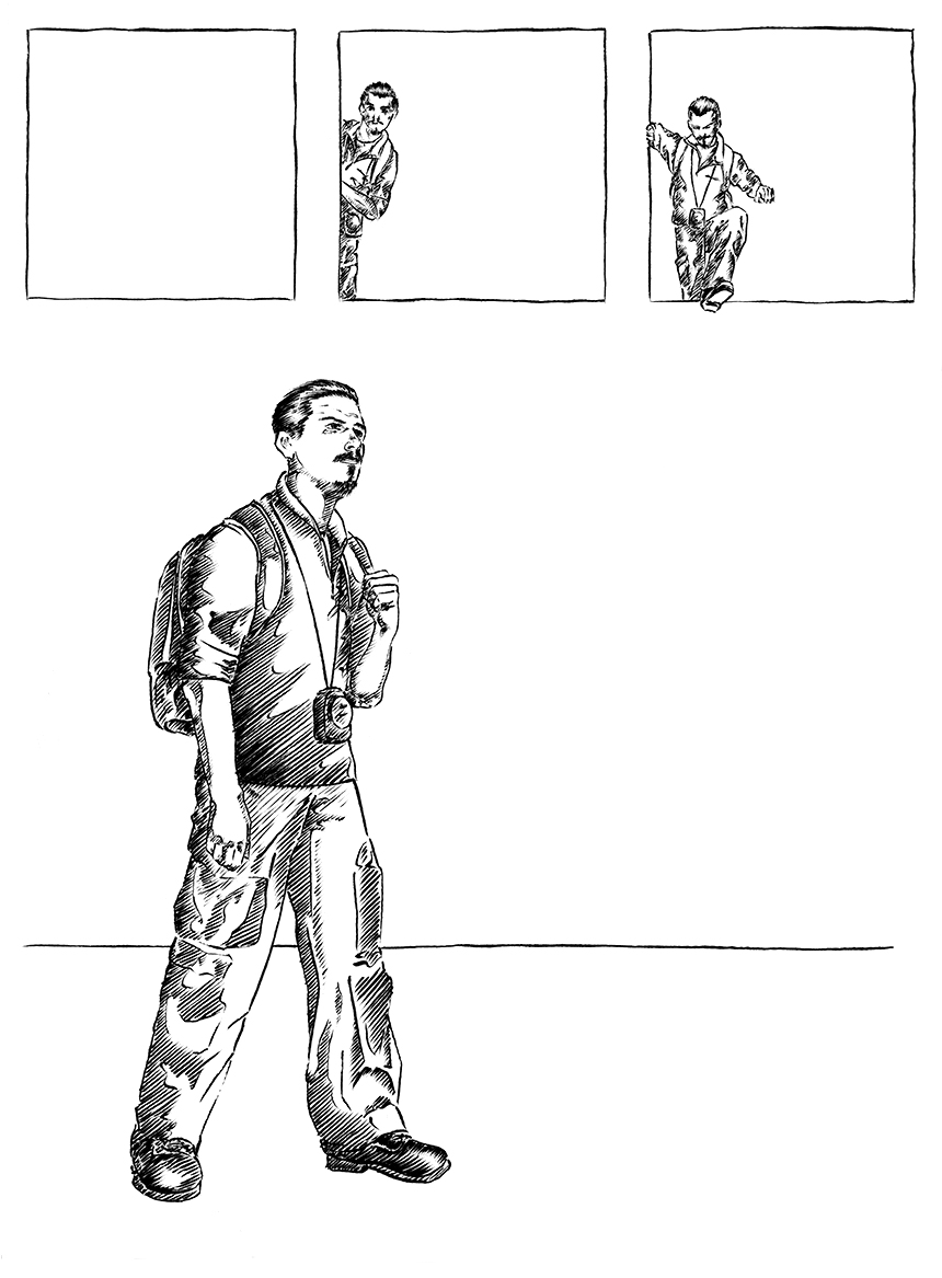 On peut me voir dans une espace vide, en tenue "photo d'urbex" amorçant le début d'un quelque chose par le tracé d'une ligne d'horizon.